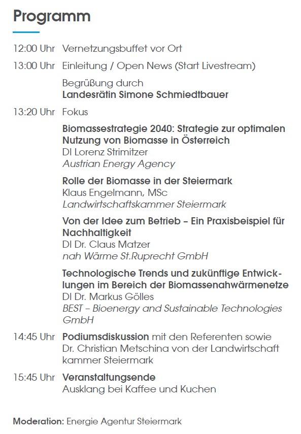 Biomasse ist der wichtigste heimische Energieträger in Österreich. Sie liefert saubere, krisensichere Energie, stärkt die regionale Wertschöpfung und treibt die Dekarbonisierung des Wärmesektors voran. Als begrenzte Ressource muss ihr Einsatz effizient und strategisch erfolgen. Technologische Entwicklungen, Sektorkopplung und Flexibilisierung eröffnen neue Perspektiven – und zeigen heute schon in Praxisbeispielen, wie die Zukunft der Biomasse aussehen kann.