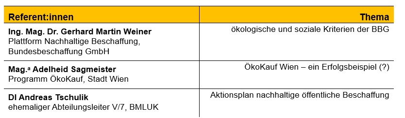 Beschaffung war lange Zeit eine rein ökonomische Angelegenheit. Nicht selten war der Billigstbieter zugleich der Bestbieter. Im Zuge einer Orientierung hin zur Nachhaltigkeit müssen auch die Kriterien der Bundesbeschaffungsgesellschaft angepasst werden. Mit ÖkoKauf Wien hat die Stadt Wien bereits einige Erfahrung gesammelt. Auf Bundesebene läuft der „Aktionsplan nachhaltige öffentliche Beschaffung“. Soziale und ökologische Kriterien sollen bestmöglich berücksichtigt werden.