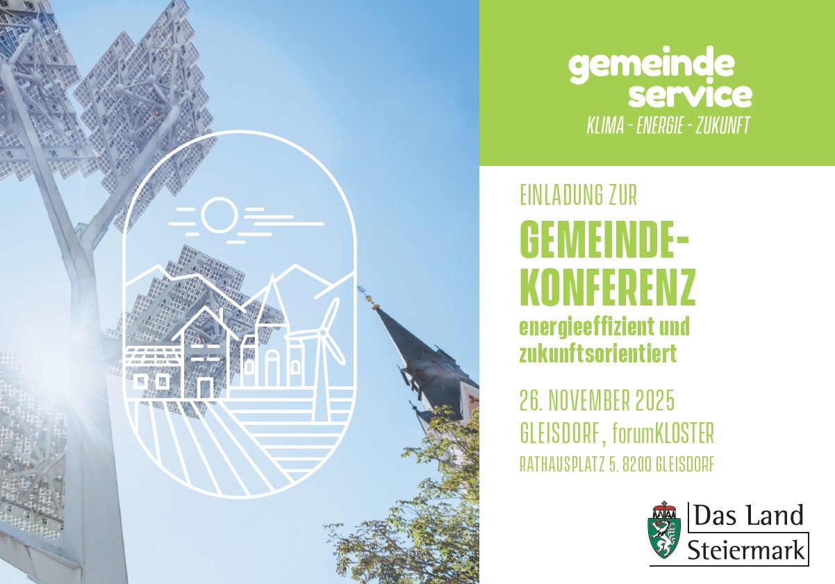 Spannende Vorträge von und für Gemeinden, Neuigkeiten vom Land Steiermark und vom Bund innerhalb Energie und Klima und viel Raum für Vernetzung und Austausch: die heurige Gemeindekonferenz im forumKLOSTER in Gleisdorf (26.11.2025) bietet das. …und noch mehr!